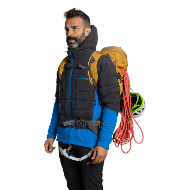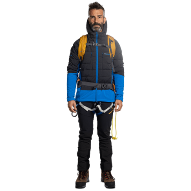 Jacket for winter mountaineering activities. Windproof. High thermal capacity thanks to the Primaloft® Silver Thermoplume Cross Core filling.