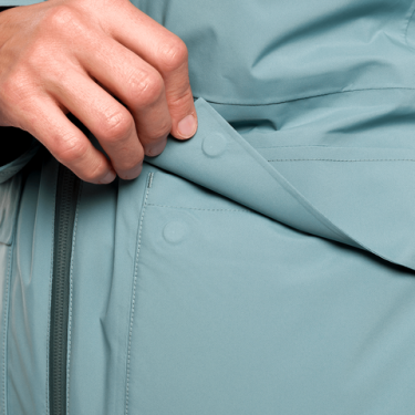 Adjustable Velcro cuffs and elastic hem adjuster with tanka closure. Includes a removable inner fiber jacket. Hidden chest pocket with zipper, zippered hand pockets, and inner pocket with zipper. With a water column of 10000mm, this jacket is waterproof, PFC-free water repellent, breathable, warm, and comfortable, with a functional design ideal for various outdoor activities.