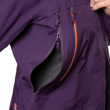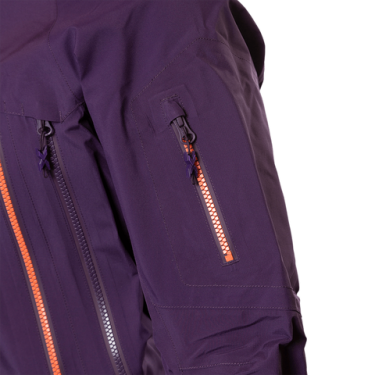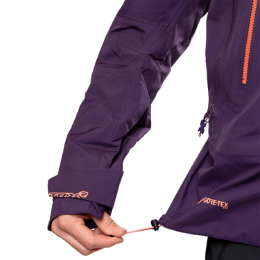 Jacket made with Gore-Tex® Pro 3L, offering waterproofness and breathability. Features a fixed hood with semi-rigid visor, dual facial adjustment, and adjustable volume. Sealed seams, waterproof zippers, and a waterproof and breathable membrane. Articulated sleeves and reinforced shoulders. Side ventilation, adjustable Velcro cuffs, and a removable snow skirt. Elastic drawstring at the hem with a hook-and-loop fastener and a longer back. Wide-opening front pockets, an inner sleeve pocket with zipper, and two inner pockets.