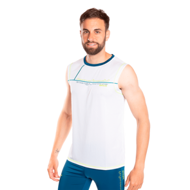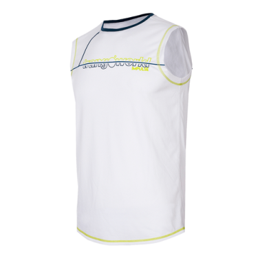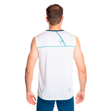 Sleeveless T-shirt in RECYCLED fabric with structure that facilitates breathability, including features such as quick drying.With antibacterial treatment. Reflective motifs in the lumbar area for better visibility