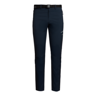 Long trousers with an elastic waistband and belt, zip fly with a flap, pre-shaped knees, and V-pattern. Includes side, leg, and back pockets with zippers. Made with SCHOELLER® DYNAMIC, breathable, water-repellent, and bi-elastic for greater comfort and freedom of movement. Ideal for mountain climbing, trekking, and hiking.