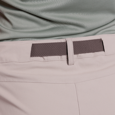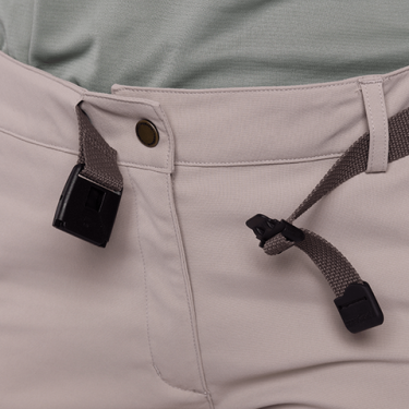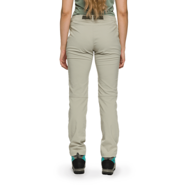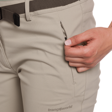 Long trousers for trekking and hiking. V-shape fit. Elastic. Water repellent treatment without PFC.