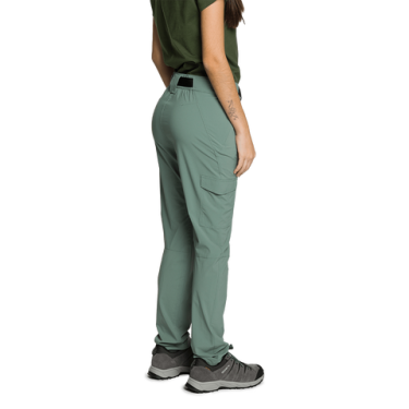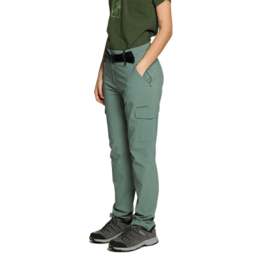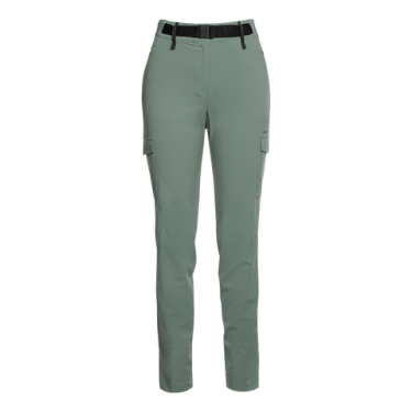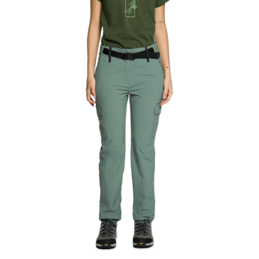 Pantalon en polyamide recyclé Free4move avec taille élastique et ceinture, passants pour ceinture, motif en V, poches latérales et cargo sur la jambe. Traitement déperlant sans PFC, tissu bi-extensible. Idéal pour la randonnée et les activités légères en montagne.
