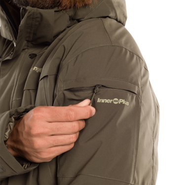 Veste en tissu Inner Plus 2 L remplie de duvet de canard RDS (300 g) pour une isolation thermique exceptionnelle. La capuche amovible avec zip, les ajusteurs faciaux et de volume doubles garantissent un ajustement parfait.
