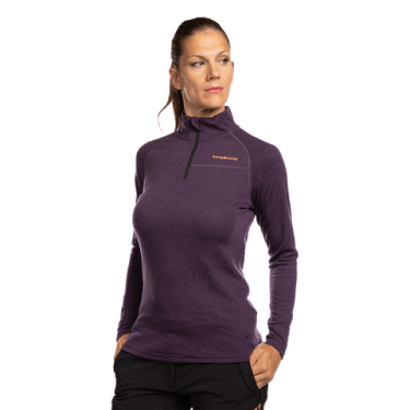 Pull intérieur en laine Merino® et nylon avec fermeture éclair au col et manches longues. Coutures à 4 aiguilles pour un confort optimal et dos plus long. La laine Merino intérieure offre respirabilité, séchage rapide et confort thermique.