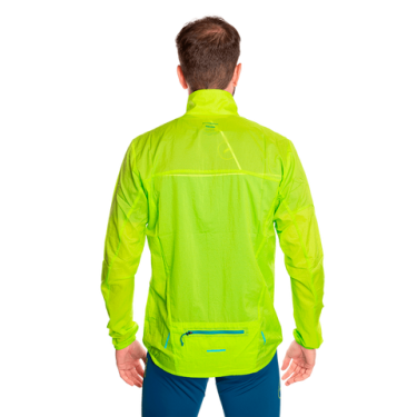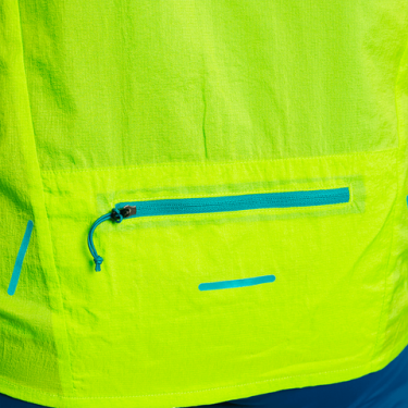 Veste coupe-vent ultra-légère en tissu RECYCLÉ.Traitement déperlant sans PFC. Sur le dos a une poche qui permet de compresser le vêtement. Motifs réfléchissants dans la région lombaire pour une meilleure visibilité.