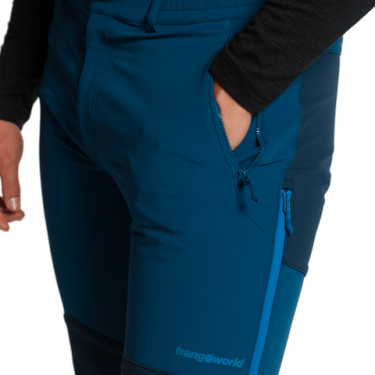 Pantalón técnico con nylon reciclado Free4move, bielástico y transpirable. Interior cardado para un extra térmico, diseño ergonómico con conformado trasero en rodilla y bolsillo de rejilla en pernera. Tratamiento de repelencia al agua sin PFC. Certificado Bluesign®.