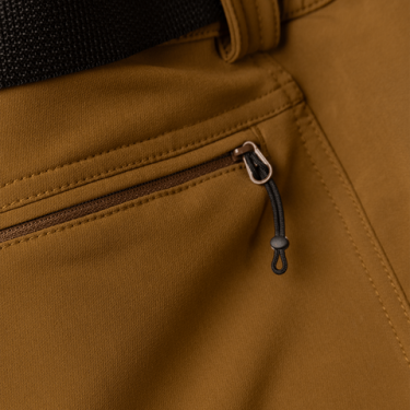 La cintura con elástico y cinturón asegura un ajuste cómodo y versátil. Las rodillas conformadas y el patrón estrecho proporcionan un ajuste ergonómico y libertad de movimiento. Los bolsillos laterales con cremallera vista, el bolsillo oblicuo con cremallera en la pernera y el bolsillo trasero con cremallera ofrecen almacenamiento seguro y accesible.