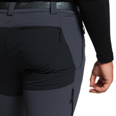 Pantalón técnico con nylon reciclado Free4move, bielástico y transpirable. Interior cardado para un extra térmico, diseño ergonómico con conformado trasero en rodilla y bolsillo de rejilla en pernera. Tratamiento de repelencia al agua sin PFC. Certificado Bluesign®.
