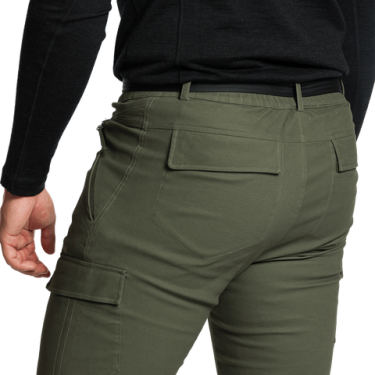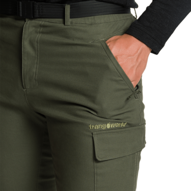 Pantalón cómodo y funcional en algodón-elastán, con cintura elástica, cinturón y patrón V. Bolsillos laterales, cargo y traseros con cierre. Diseñado para ofrecer libertad de movimiento y versatilidad en montaña, senderismo o tiempo libre.